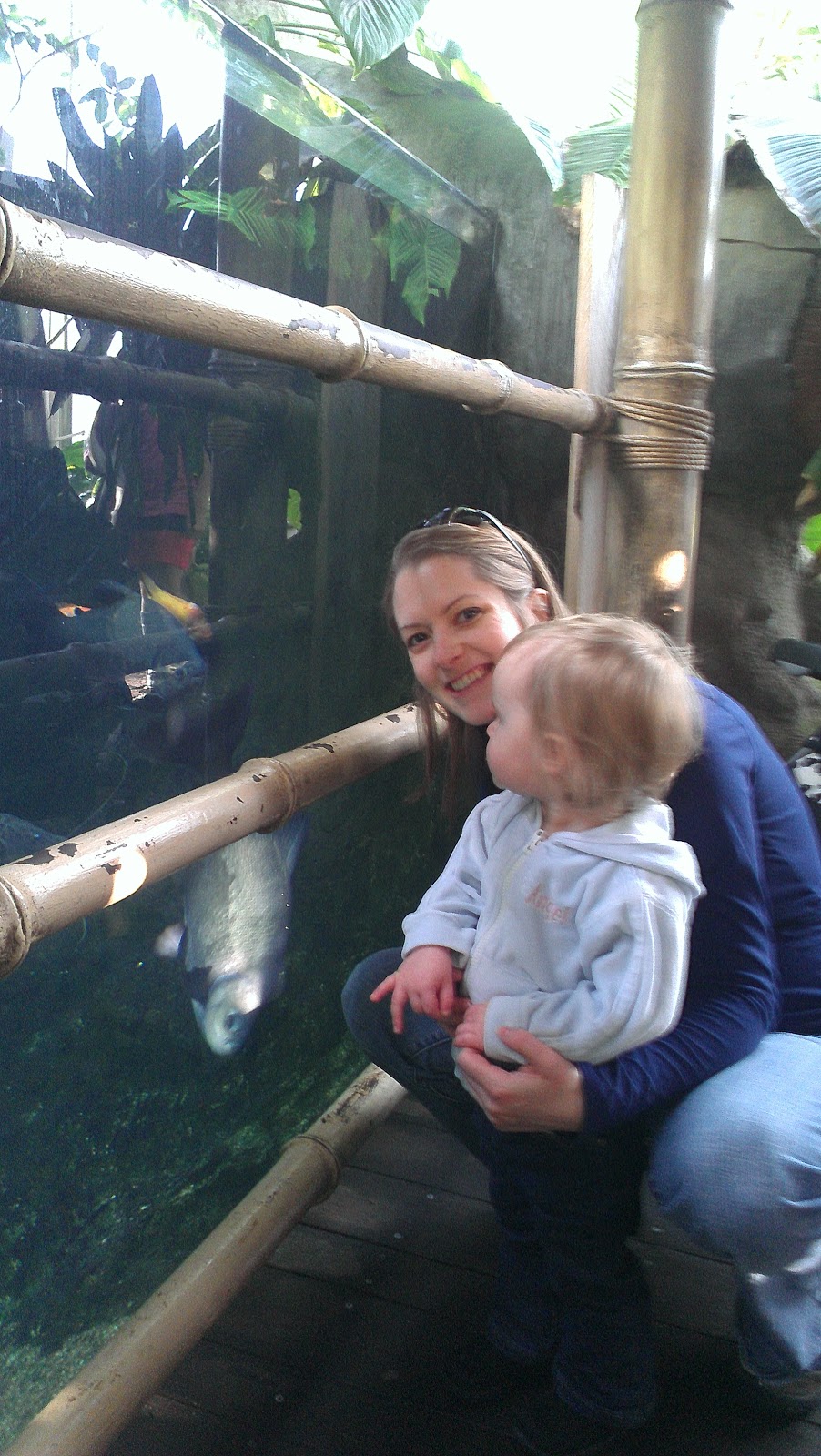 Yes, this is our child smushing her face up against the glass to see the monkeys just that much closer. I would have been the responsible mommy and stop her, but there were so many people and I just couldn't get there in time. So eh, why not document it?!